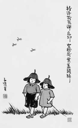 豐子愷繪《折得荷花渾忘卻,空將荷葉蓋頭歸》