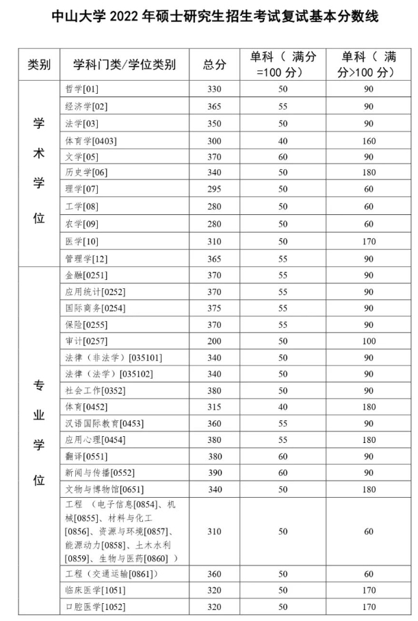 目前,全國共有34所自主劃線院校,包括北大、清華等。作為其中一所,3月11日晚,中山大學研招辦官方微信號也發布了中山大學2022年碩士研究生招生考試復試基本分數線(簡稱校線)。