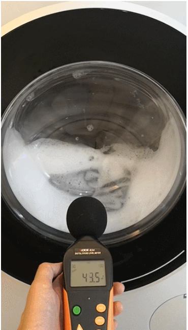 洗滌時西門子的噪音表現是最優秀的,當時測試的背景噪音為43dB左右,我坐在西門子洗衣機旁邊,不注意聽,幾乎感覺不到其運行。