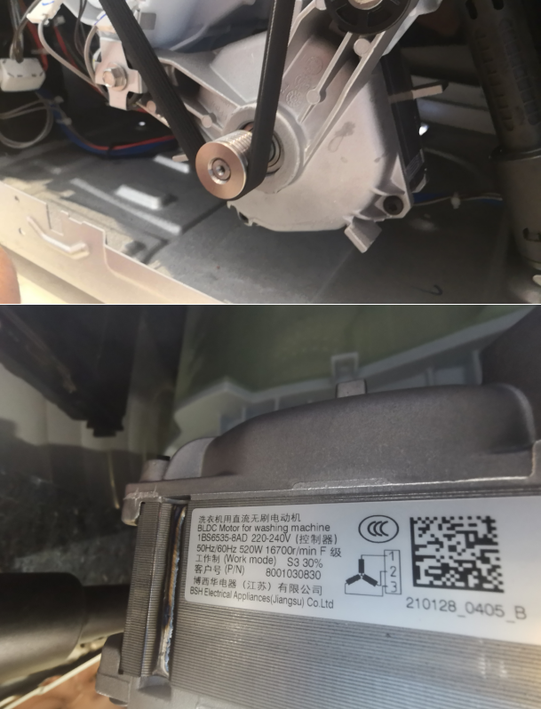 西門子080W采用的也是皮帶傳動,電機是博西華(博士-西門子),這就是老牌家電廠零配件的自給自足。
