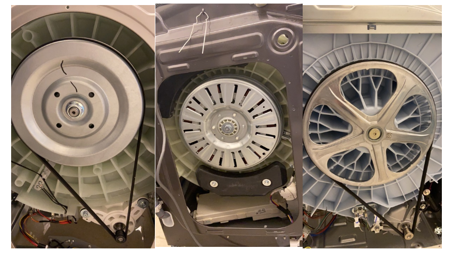 回到測試的三臺洗衣機上,松下采用的時皮帶驅動,電機是京馬牌,上一次看到松下洗衣機用京馬電機還是14年的時候,轉眼我已經從小豬肉變成了老臘肉。