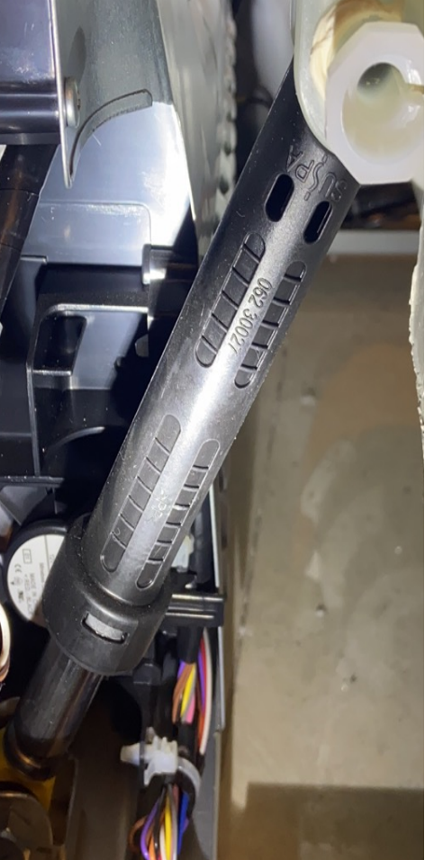 松下和LG的排水口都是上圖這種從洗衣機下方伸出的類型,外部的排水管需要由下至上固定在洗衣機背面,才能確保洗衣機正常工作。