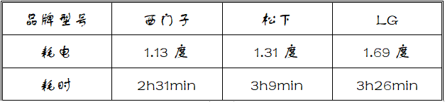 在洗滌物相同,都達到“干衣即穿”效果的情況下,西門子080W洗烘一體機在耗能、耗時方面明顯優于松下和LG。