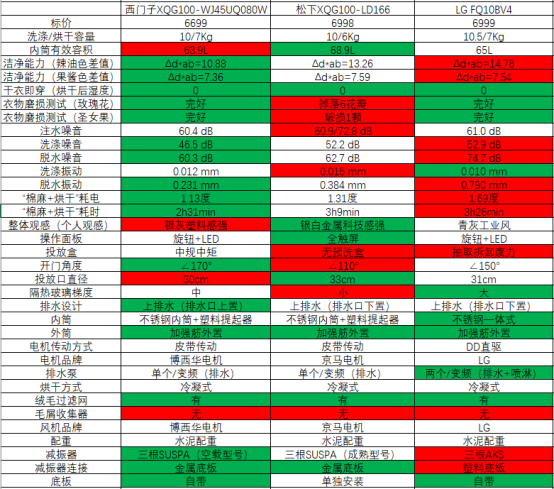 很多粉絲不知道怎么看圖,底色標綠的表示單項優秀,白色打底的表示中規中矩,底色紅色的表示單項對比欠佳。但是也不是綠色多就好,各個品類的電器還是要看各功能的權重,我沒有統一做權重表,大家自己心中去權衡吧。