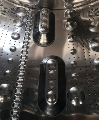LG的提起器是與內桶一體的,避免了夾縫藏污,并且錯落有致,在烘干時更利于衣物舒展,這點和隔熱玻璃梯度設計有異曲同工之妙。