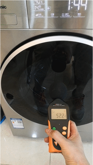 在烘干方面,三臺洗烘一體機都能達到“干衣即穿”的程度,濕度計測量數值顯示0,用手摸烘干余溫明顯(31℃左右),且沒有潤感。