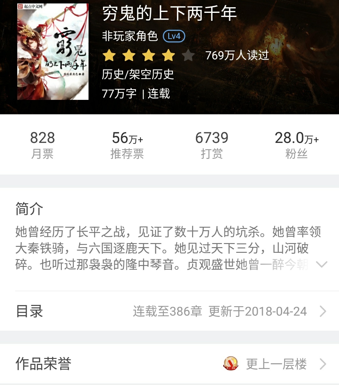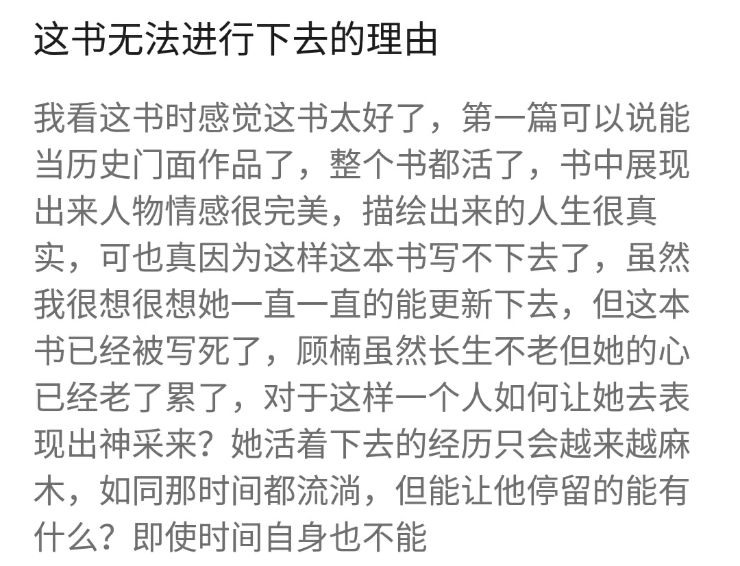 好了,言歸正傳,今天在書架里發現一本很好的書,已經有半個月沒更了,我有點納悶,寫的挺好的啊,成績更是不錯,怎么可能太監了?疑惑在前,當即百度,又在書評里尋找蛛絲馬跡。了解過后,呆坐了幾分鐘,算是哀悼吧。實在是令人惋惜。