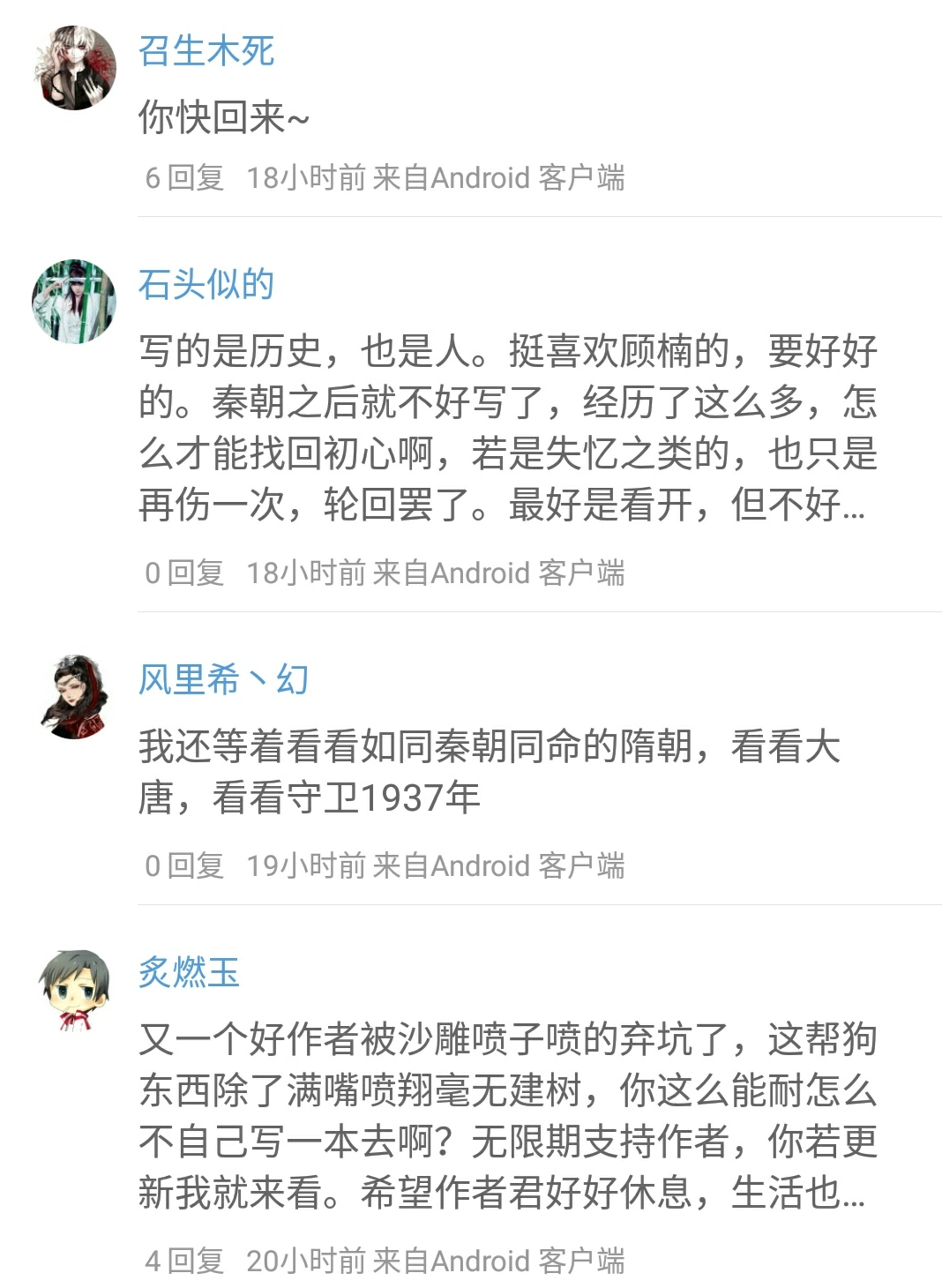 到最后我依然惋惜,為作者,也為他的作品。唉~大家對他太監有什么想法嗎?