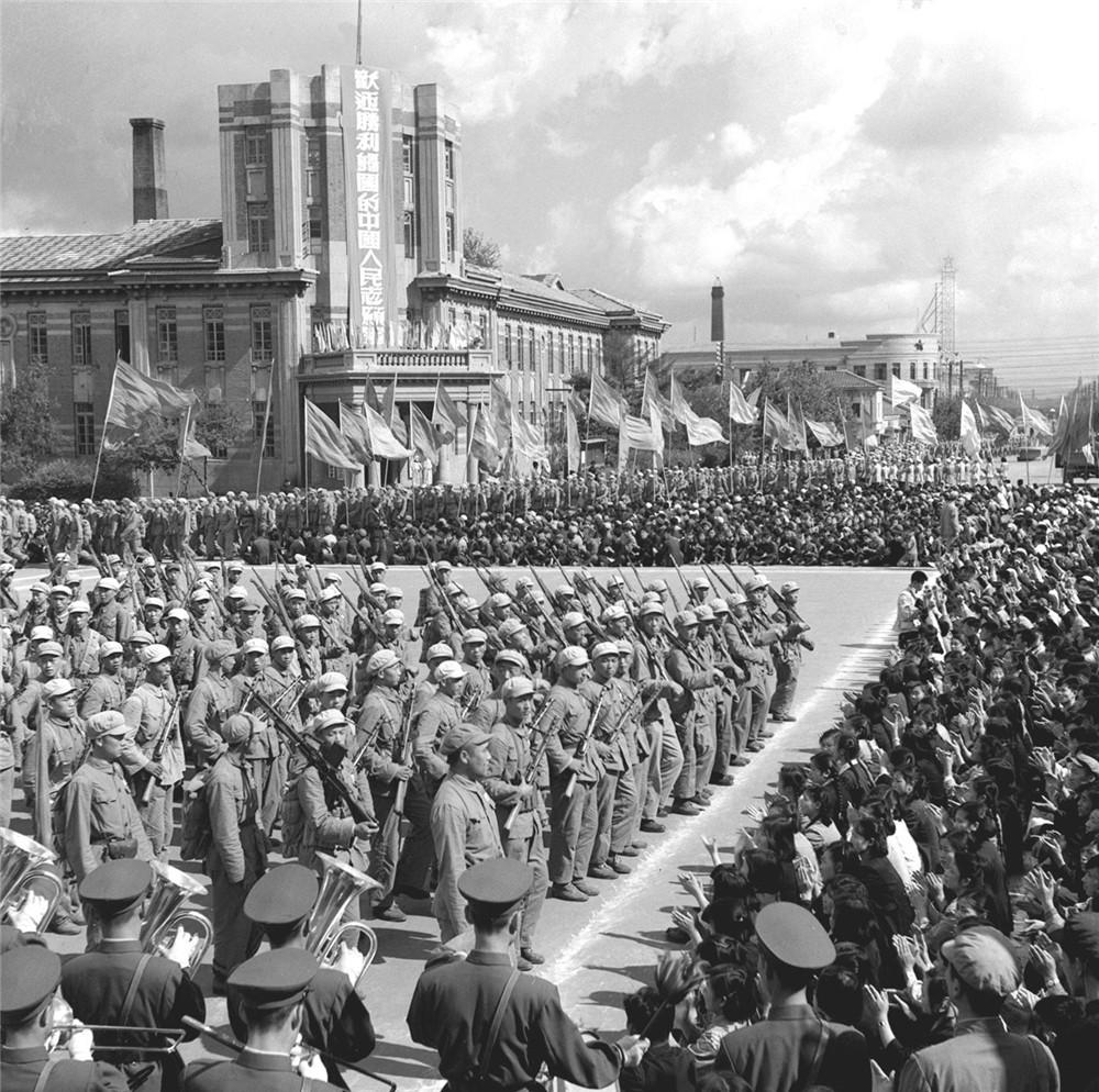 1954年9月20日,中國人民政治協商會議全國委員會、中國人民抗美援朝總會在安東市(今遼寧省丹東市)舉行大會,歡迎中國人民志愿軍歸國部隊。(新華社記者 蔡忠植 攝)