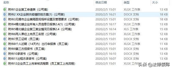 這而中間要填多少表格呢?以無錫網友微博發布的信息為例,公司要填《企業復工申請表》《用人單位上崗員工名冊》《企業肺炎疫情防控方案》《企業集隔醫觀場所設置及管理要求》《企業所有人員信息日報表》《企業復工復業情況日報表》《承諾書》《出租方承諾書》,員工要填《員工證明》《個人近期(14天內)出行申報表》《第三方擔保書》。