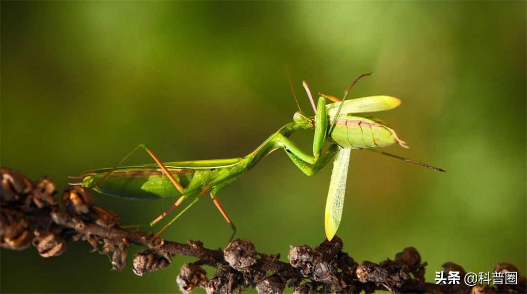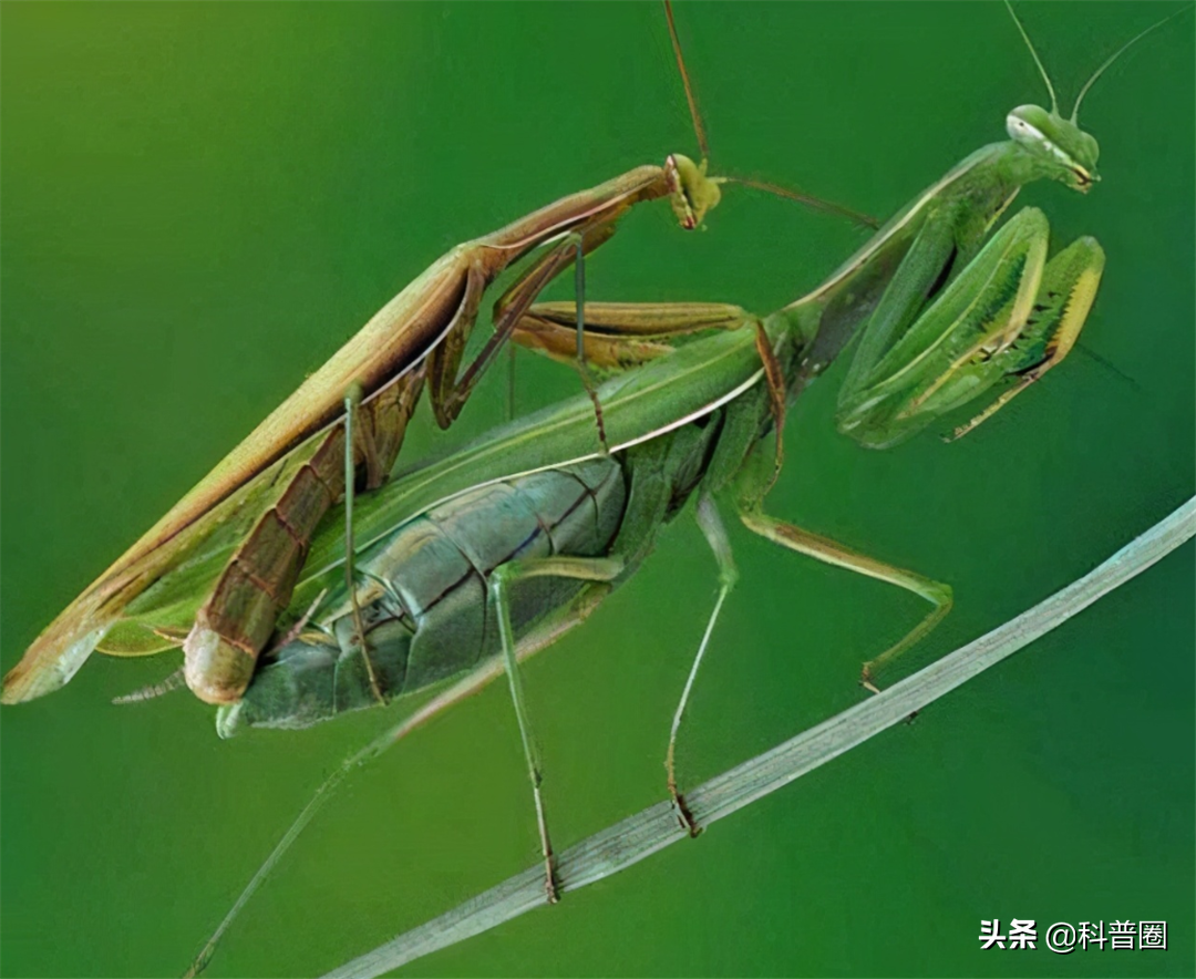 要知道,雌性螳螂的體型比雄性螳螂大2倍,如果它們抓到機會攻擊,那么雄螳螂很難逃出生天。不過也有例外,有些公螳螂能及時脫身,甚至反殺母螳螂。