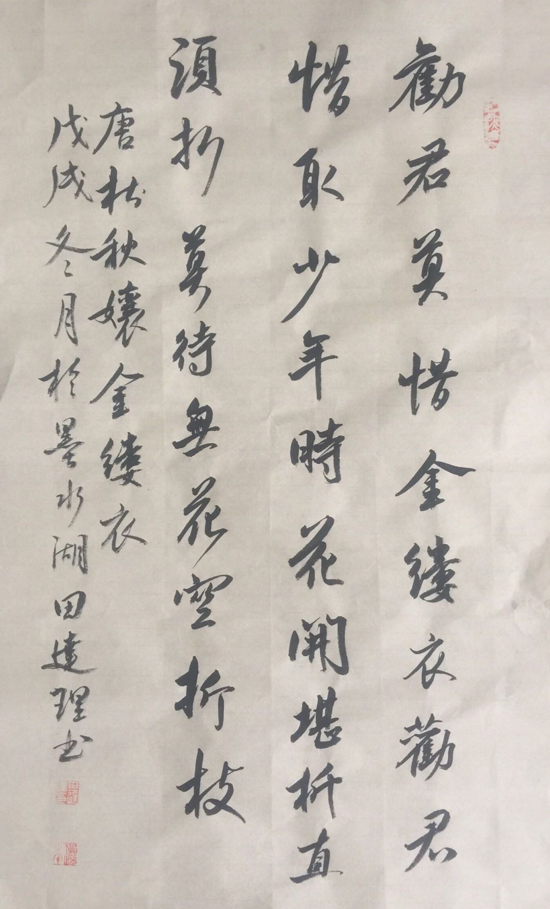 勸君莫惜金縷衣,勸君惜取少年時。