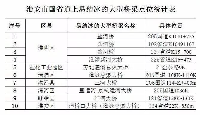 淮安境內國省道易結冰橋梁,請注意以下路段