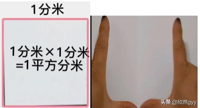 (2)平方分米:邊長為1分米的正方形面積是1平方分米。1平方分米大約有人的左右手大拇指和食指張開,形成“囗”的面積大小,平方分米主要用于測量桌子面凳子面的面積。
