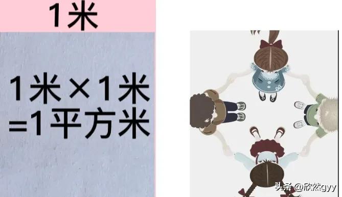 平方米:邊長為1米的正方形面積是1平方米。1平方米有4個小朋友手拉手四個方位站好,圍成的面積大小。平方米主要用于測量房間門操場游泳池較大物品的面積。