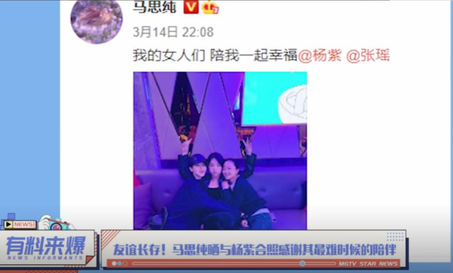 娛樂圈有真正的姐妹情嗎?馬思純失戀后,最好的朋友周冬雨不見蹤影,陪伴她最多的是楊紫和張瑤。