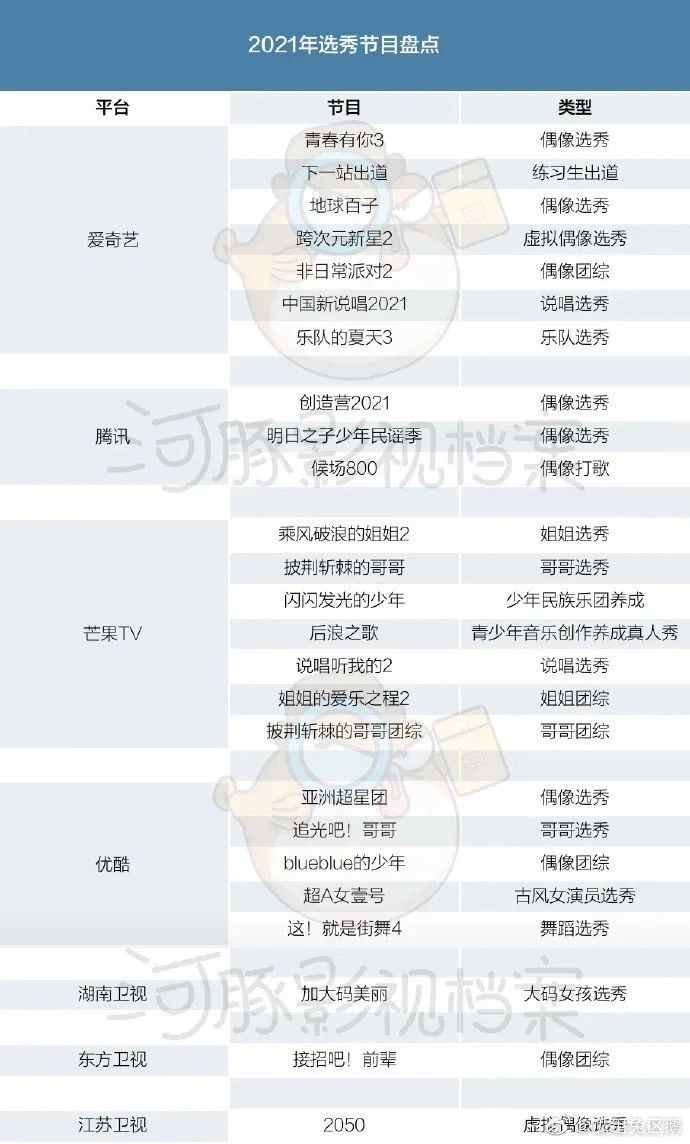 結合網傳2021年節目單,有人感嘆,曾經每位大眾都能看的音樂綜藝,全讓位給了《乘風破浪的姐姐》《青春有你》《創造營》這些以粉絲為主要受眾的選秀網綜。