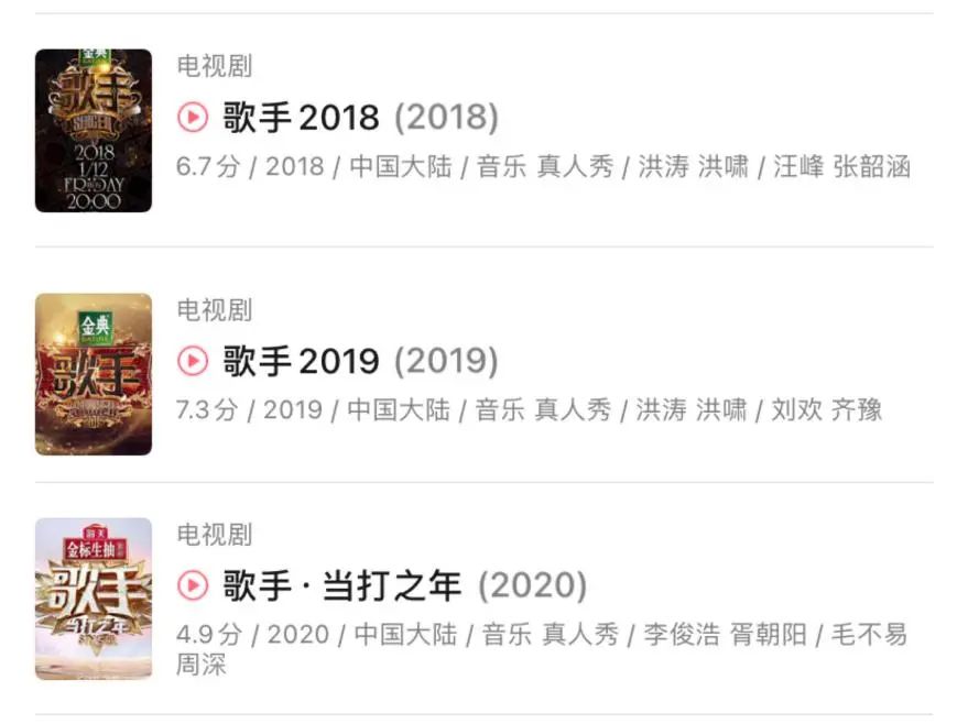 命運相似的,還有曾與它兩分音綜天下的《歌手》。