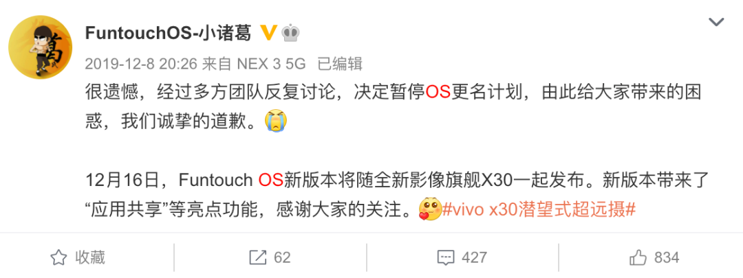 作為補充,去年vivo員工就在微博透露過FuntouchOS的更名計劃,當時預告FuntouchOS將改名JoviOS,Jovi是vivo的語音助手的名字,但最終更名計劃擱淺。