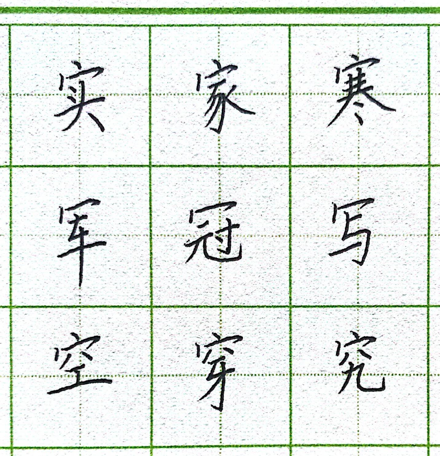 這篇文章來研究研究帶有寶蓋頭的字,很長一段時間里怎么寫都看起來怪怪的,我們來看看哪些筆畫可以優化的。