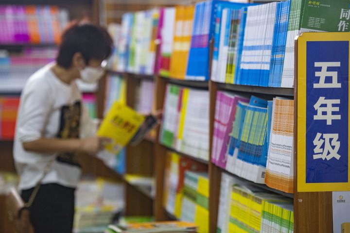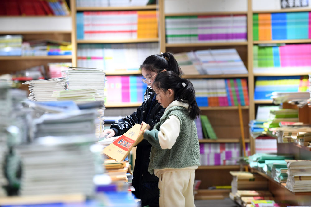 2月1日,家長在海南省瓊海市的一家文化用品店選購教輔圖書。新華社發(蒙鐘德攝)