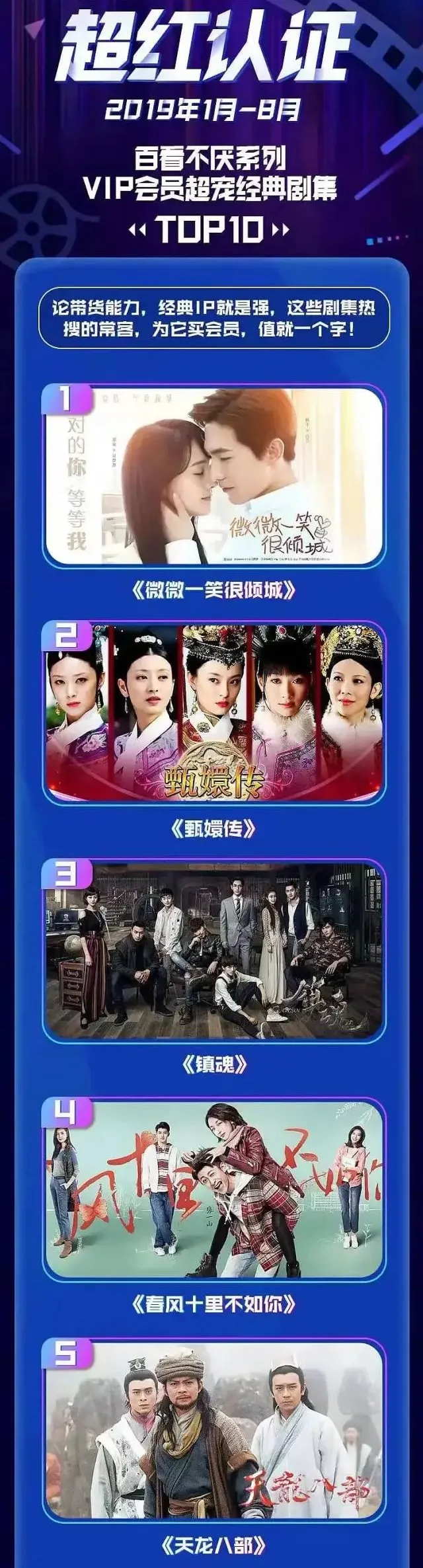 況且黃日華版《天龍》就算到了現在,數據也是很不錯的,時隔22年,人家拉新數據還能闖入2019年前三季度平臺前5呢。