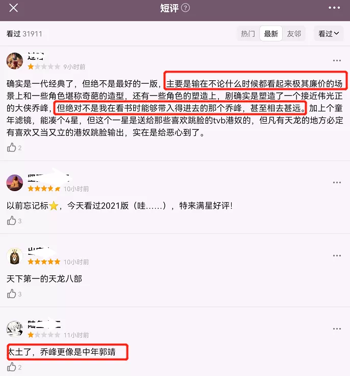 雖然黃日華版本《天龍八部》評分高達9分,但因為播出年代久遠,打分人數只有13萬,打低分人數增多,影響還是很大的。