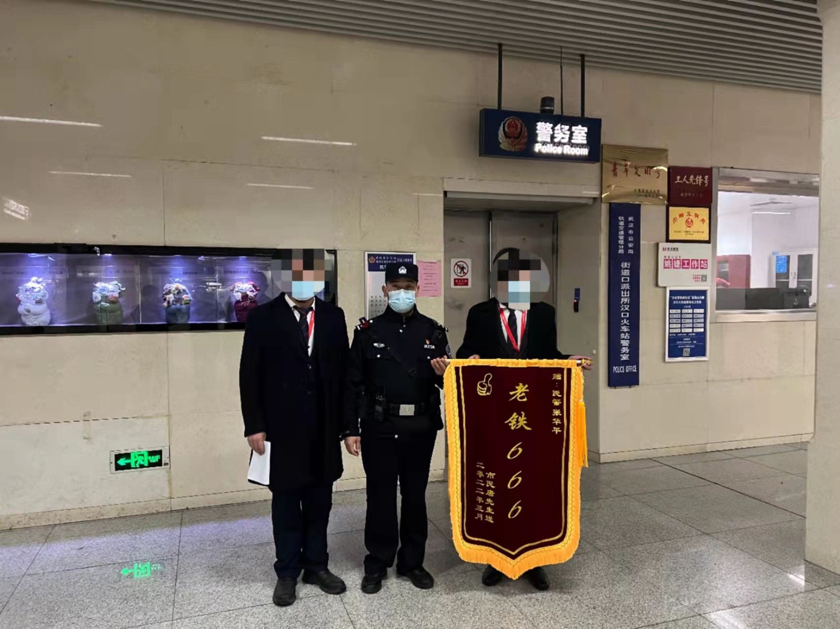 長江日報大武漢客戶端3月8日訊(記者徐丹 通訊員張祖華)3月6日一大早,24歲的河南小伙唐先生和同事一起來到地鐵2號線漢口火車站警務室,為民警張華平送上一面特別的錦旗,錦旗上“老鐵666”幾個字特別醒目。警務室的工作人員都樂了,爭著過來詢問究竟,這才帶出了錦旗背后一段暖心的故事。