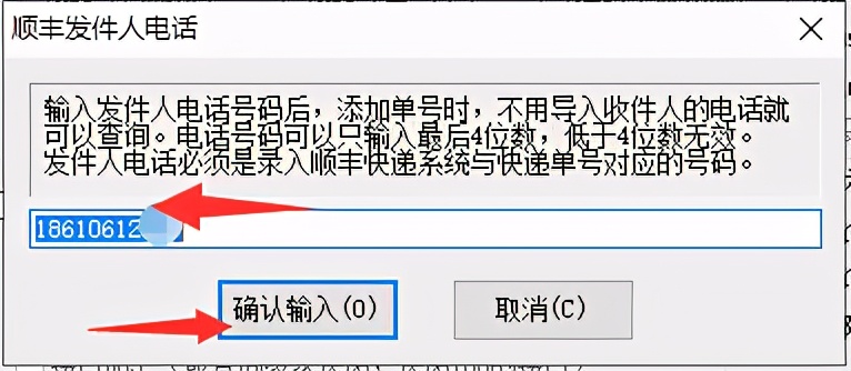將所需要查詢順豐單號的發件人電話輸入,并點擊“確認輸入”