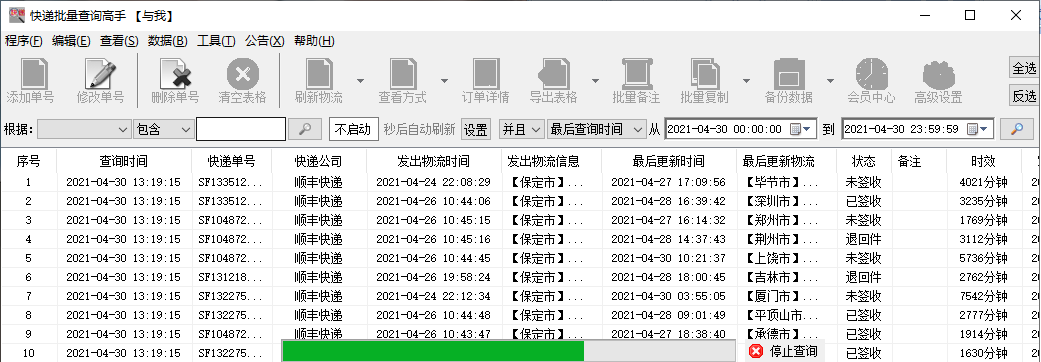 等全部查詢完成,即可看到各個單號信息