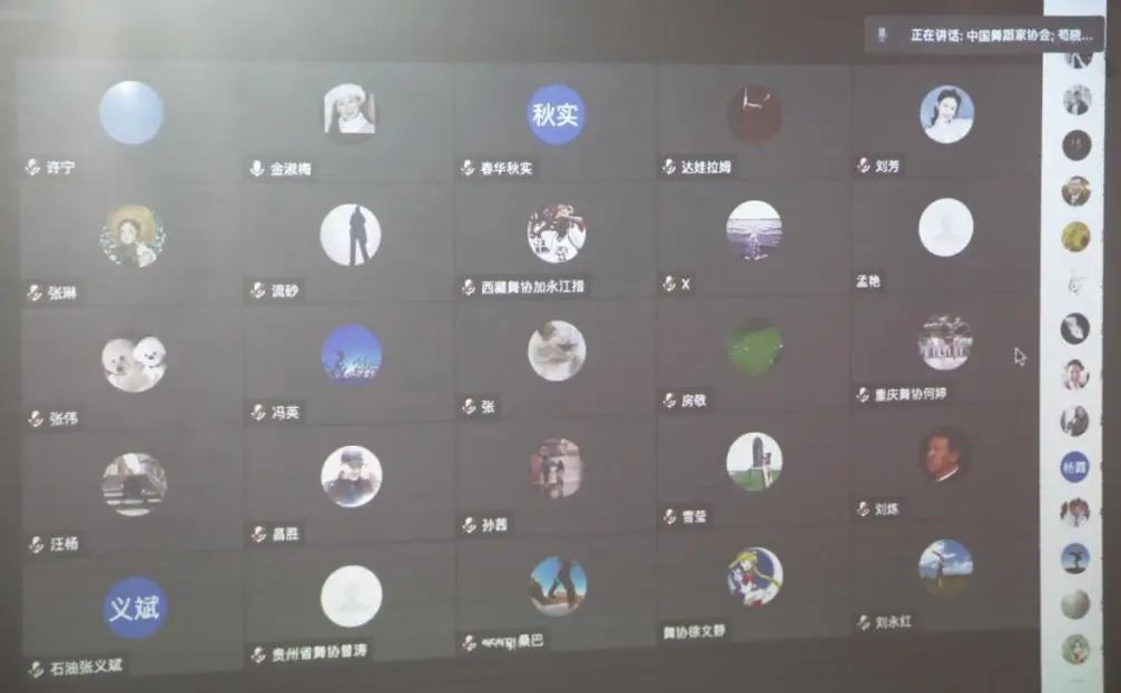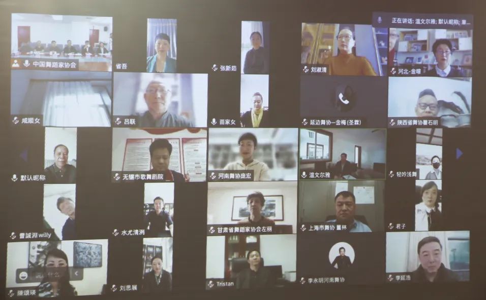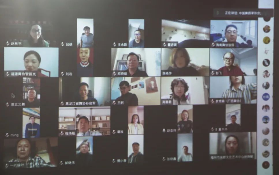 中國文聯書記處書記(掛職)、中國舞協副主席黃豆豆出席會議并講話。中國舞協主席、中國文學藝術基金會副理事長馮雙白主持會議。中國舞協分黨組書記、駐會副主席羅斌,中國舞協分黨組成員、秘書長夏小虎,中國舞協分黨組成員、副秘書長柳斌,中國文聯舞蹈藝術中心常務副主任、《舞蹈》雜志常務副主編張萍及協會工作人員線下出席會議,139名代表線上參會。中國舞協副主席山翀、王舸、達娃拉姆、呂萌、趙明、趙林平、趙鐵春、咸順女、馮英、羅斌,中國舞協理事吳虎生、王亞彬、劉福洋、汪洌、桑吉加、何軍妮等17位舞蹈家代表先后交流發言。
