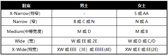在美國網站買鞋的小伙伴會發現,很多鞋子除了選擇尺碼(size)還可以選擇D(M)、B(M)、D、C/D、2E等一系列鞋寬(width)。其實在同一個鞋碼下會有多種寬度可以選擇,通常歐美人的鞋碼,女鞋有5種寬度,而男鞋則有4種寬度。