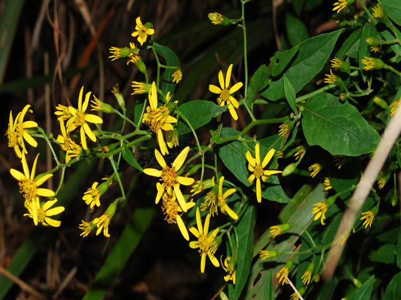 【千里光】:又名九里明、九里光、黃花母、九龍光、九嶺光。是一種中草藥,生于山坡、疏林下、林邊、路旁、溝邊草叢中。其性寒,味苦,具有清熱解毒,明目,止癢等功效。