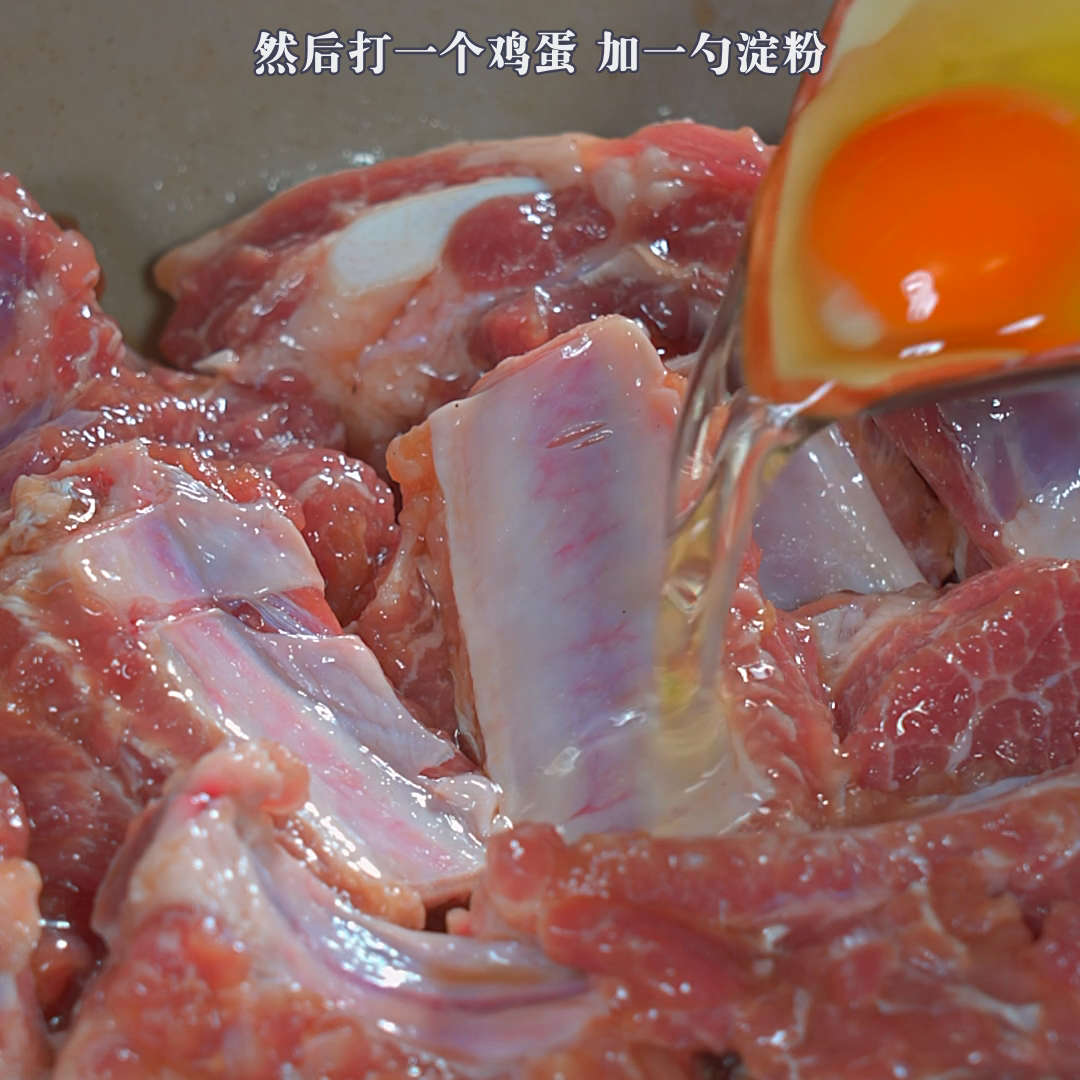 20塊的排骨剁成塊,加一把小蘇打用手像這樣抓捏一分鐘,小蘇打能很好的軟化肉質,這樣才會外酥里軟好吃不柴。