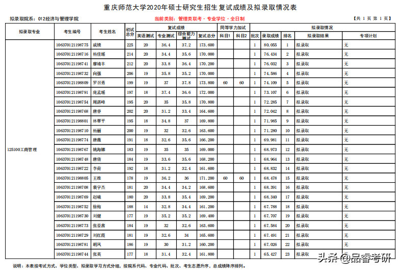MBA全日制錄取23人,有2個同等學力;非全日制錄取18人,有3個同等學力;