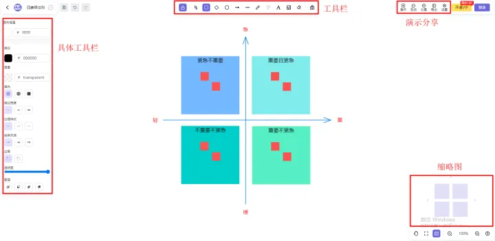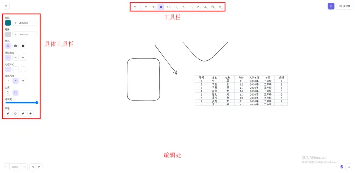 一個在線白板編輯網站,無需登錄就能使用,里面有很多的圖形,文字,顏色,描邊,箭頭等等,不過網站不會存儲數據,就是說每次都需要重新編輯課件,稍微的有一點不太方便,不過偶爾使用是完全沒影響的?