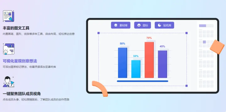 還可以借助便利貼、圖像、思維導圖、視頻、繪圖功能,釋放自身獨特的創意,并以此為基礎做出富有創造力的課件,真的是很方便了?