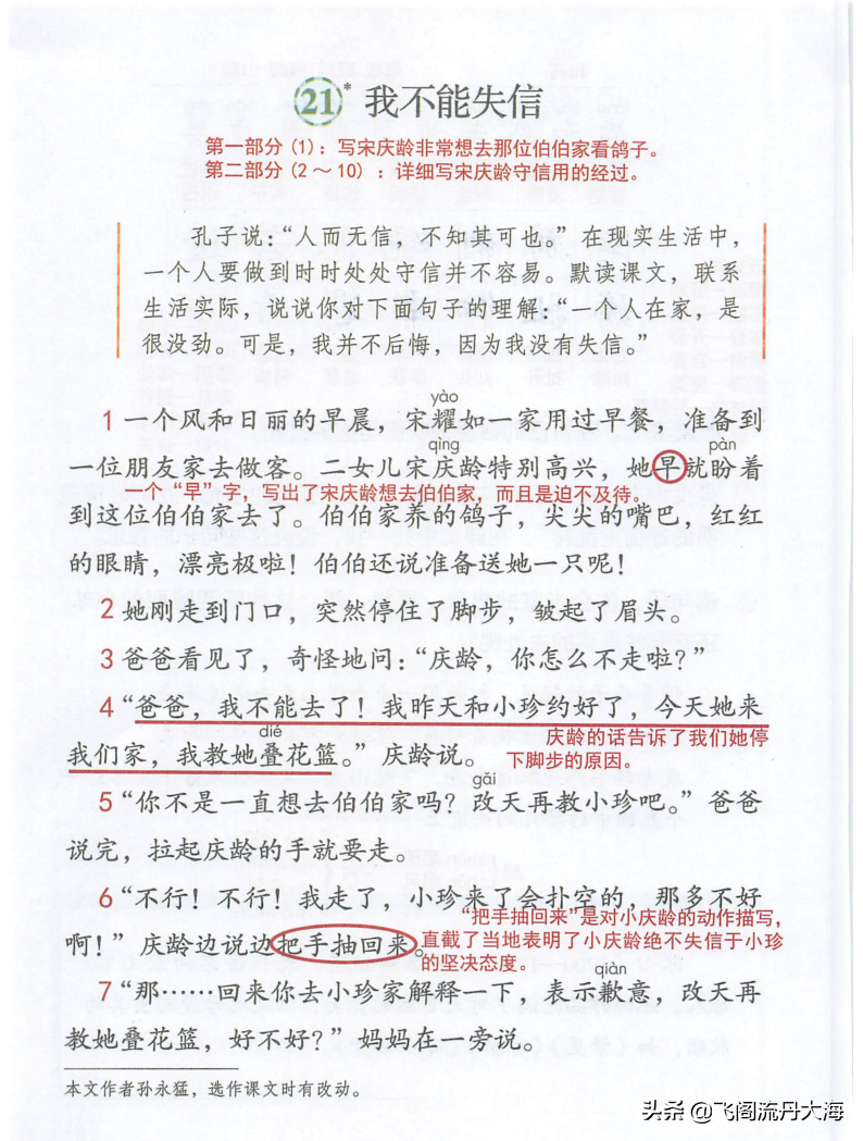 小學三年級下語文21課《我不能失信》課堂筆記、閱讀題及練習題