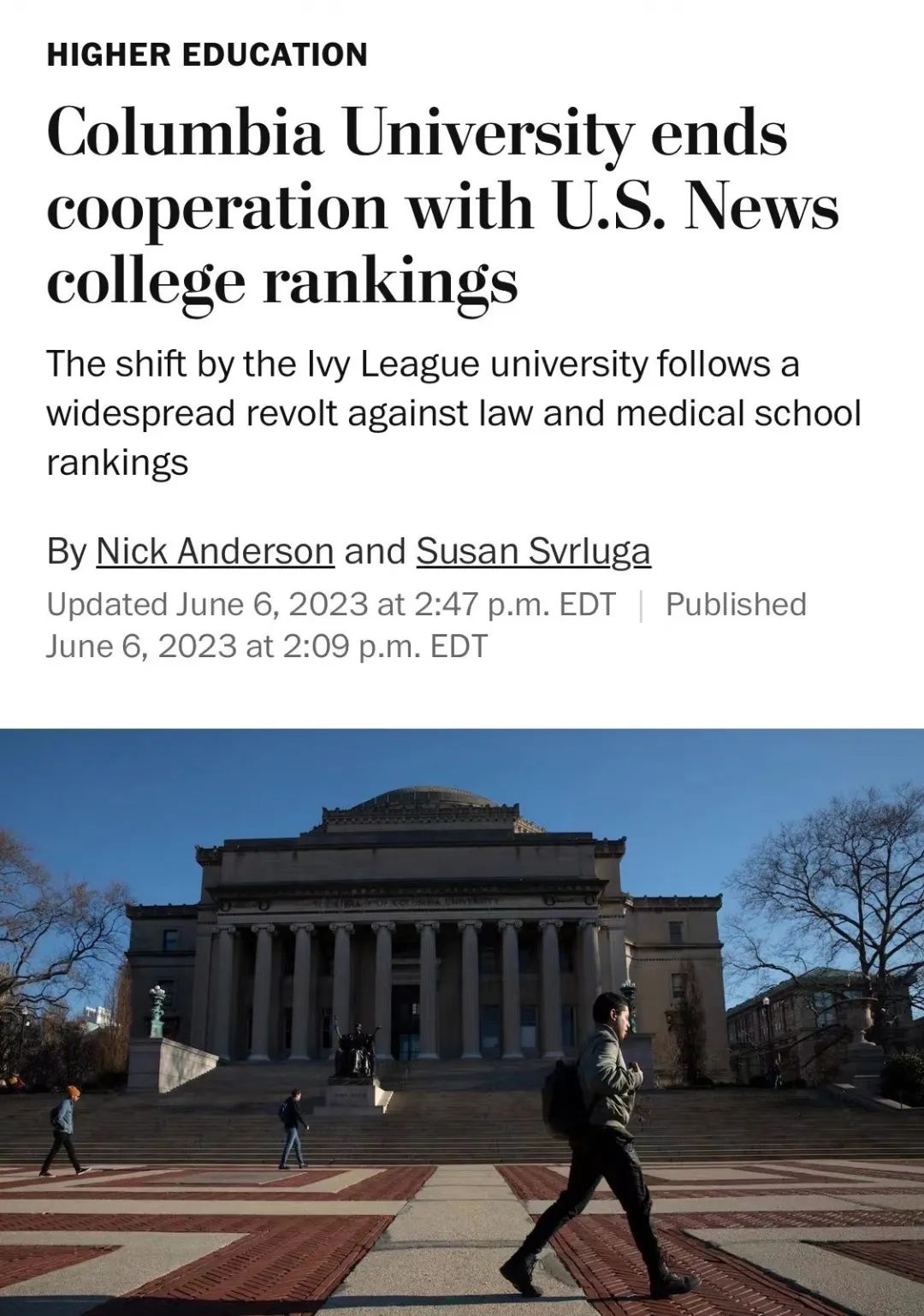 - 2022年9月,2023年US News全美綜合大學排名出爐,哥大還在排名中,但位次一下子從第二下滑至第18名,讓留學生驚掉下巴。