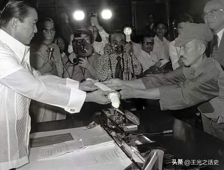 1974年,最后一個二戰日本士兵小野田寬郎向菲律賓總統投降