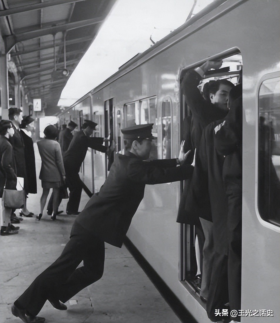 20世紀70年代的日本東京地鐵,由于東京人口巨大,地鐵工作人員甚至需要負責“上車”工作(把人推上地鐵)