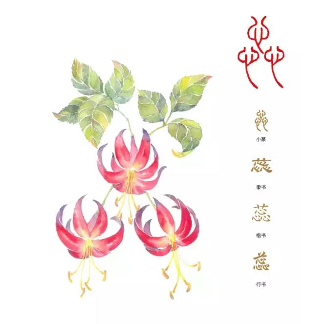 另一種是由幾個“心”疊加在一起,表示花蕊也像若干花的心房簇集在一起,這個時候它的意思是指“花蕊”,讀音也和“花蕊”的“蕊”完全一致。