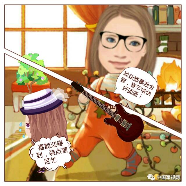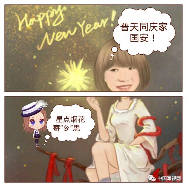 新春佳節之際,赴基層部隊代職實習的武警女學員與基層官兵們在一起站崗訓練,一起勞動娛樂,一起寫春聯、剪窗花、話年俗,這將是她們遠離父母在外度過的又一個春節。筆者制作了幾組萌漫傳達她們的新春祝福,讓我們一起感受一下吧。(文章末尾還有一組表情包呦!)