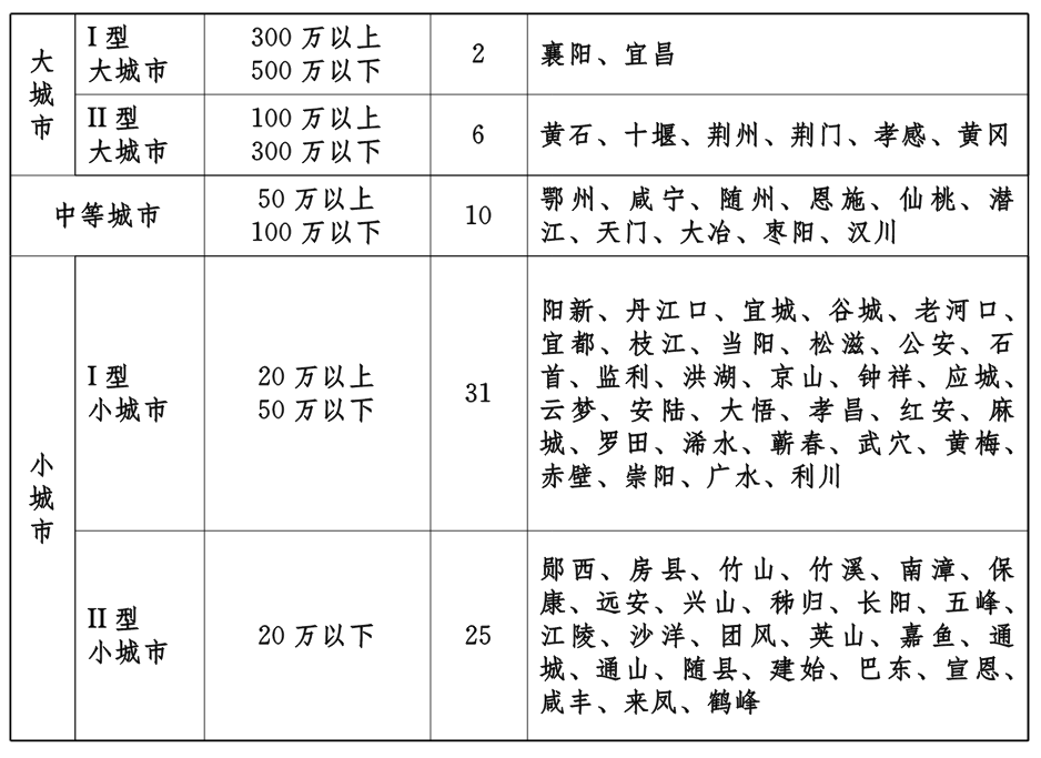 《湖北省新型城鎮化規劃(2021—2035年)和湖北省“十四五”推進新型城鎮化建設實施方案》中提出,到2035年,全省將建成10個中等城市,分別是:鄂州、咸寧、隨州、恩施、仙桃、潛江、天門、大冶、棗陽、漢川。