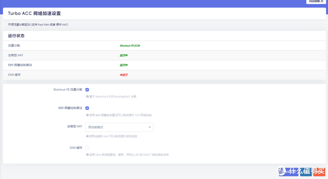 開啟【Turbo ACC 加速】,如果前面已經開啟了,檢查網絡內的【Turbo ACC 加速】設置是否正確: