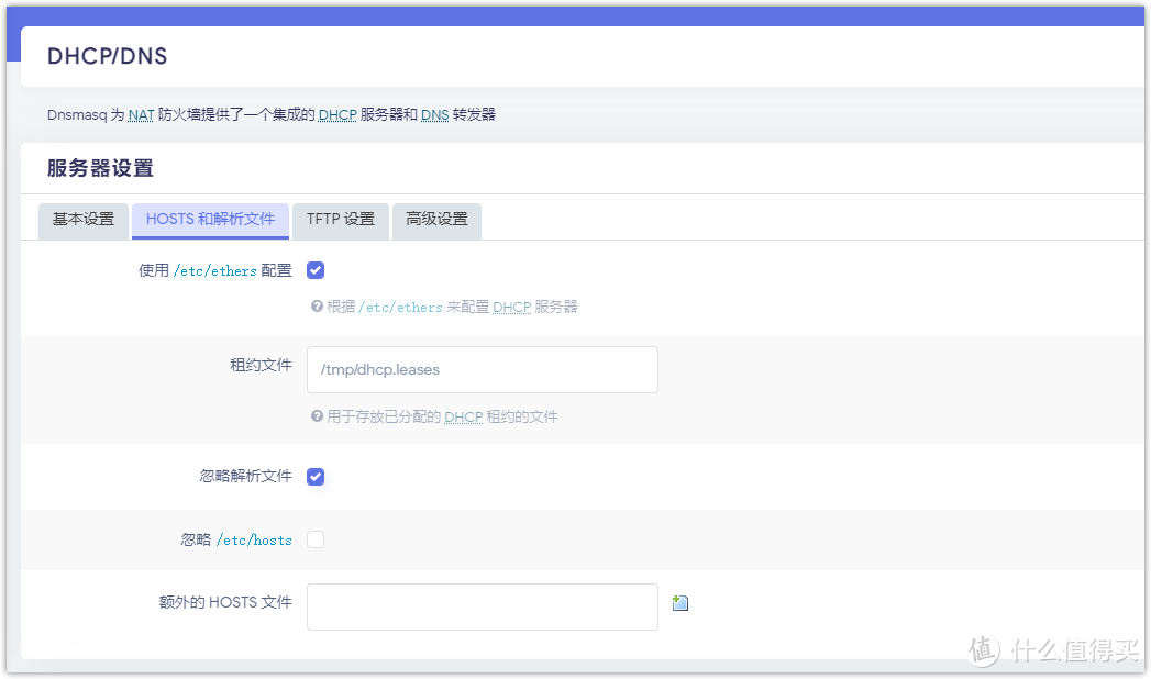 如果選擇不加載:DNSMASQ 則會將請求轉發到公共的 DNS 服務器去解析,而不是使用 /etc/hosts 中的記錄,通過 —no-hosts 選項可以選擇是否加載 /etc/hosts 內容作為 DNSMASQ 的 DNS 的本地緩存。