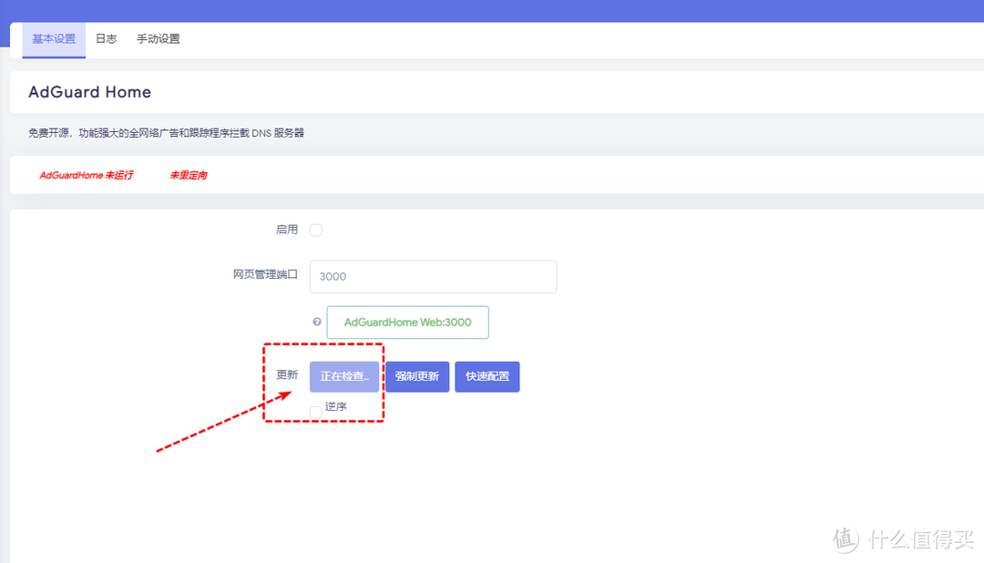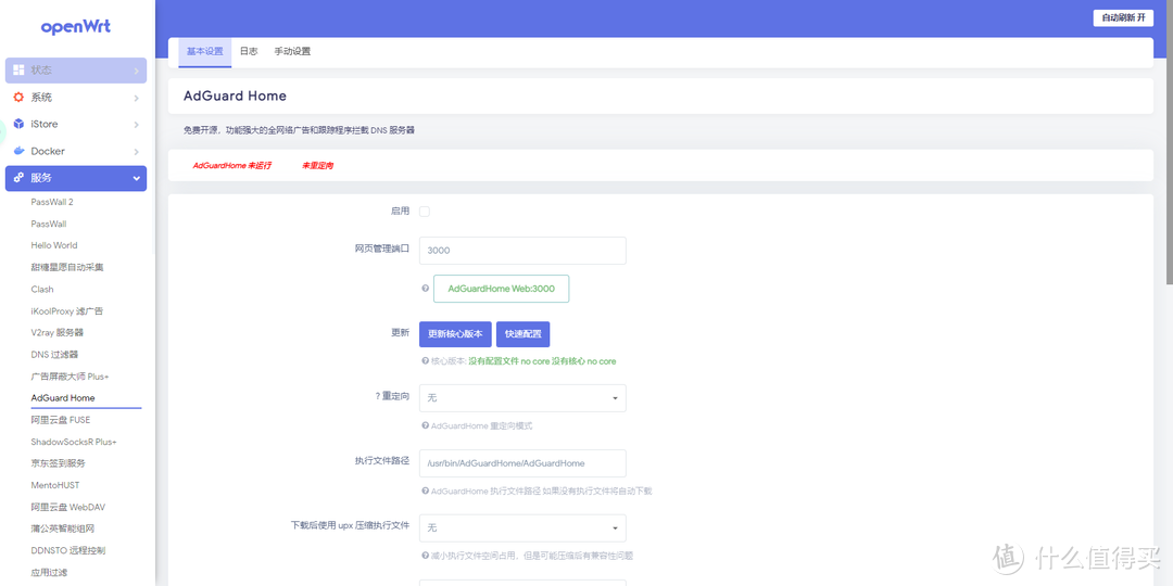 回到基本設置,會看到Adguardhome運行中、已重定向。
