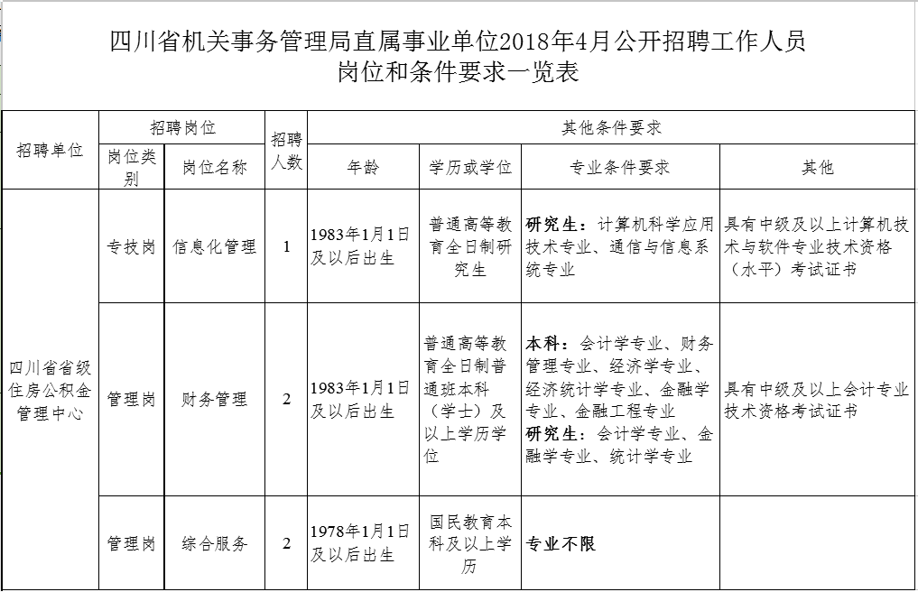 四川發布客戶端消息 記者從四川機關事務管理局獲悉,四川省機關事務管理局擬面向社會公開招聘部分工作人員補充到省級住房公積金管理中心等8個直屬事業單位工作了!快來看看有適合你的不?具體如下: