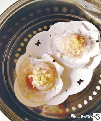 5 蒸鍋里放冷水燒開后,放入扇貝,大火蒸5分鐘出鍋。