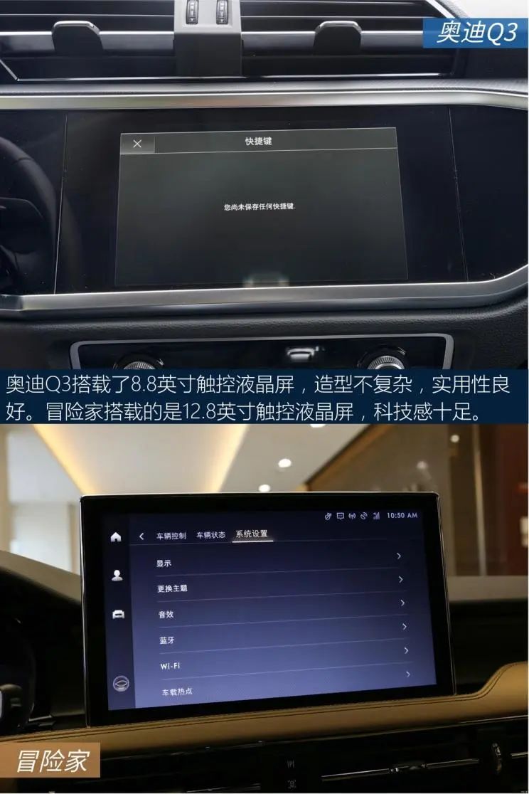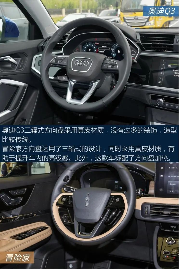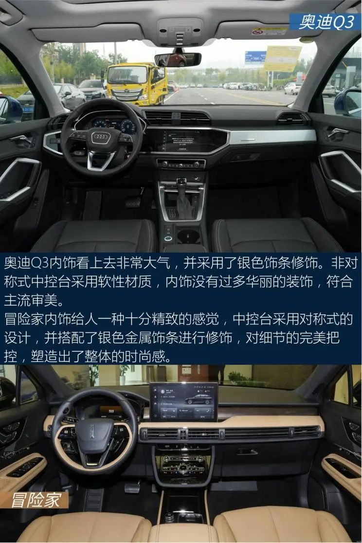 以上就是關于兩車的全部內容了,不知道會不會對大家選車有幫助。一汽-大眾奧迪-奧迪Q3的中網采用直瀑式的設計,搭配線條凌厲的前臉,顯得頗具犀利的感覺,整體看上去比較動感。同時該車的官方0-100km/h加速是9.8s,想要多強的加速那是沒指望了,不過滿足日常使用完全OK。再來看長安林肯-冒險家,這款車的車側呈現出流暢的設計風格,平滑的線條從車頭一直貫穿至車尾。來到車內,該車的中控屏尺寸為12.8英寸,中控屏采用懸浮式的設計,布局合理,且看起來很美觀。那么如果這兩款車讓你選的話,你會選擇哪一款呢?